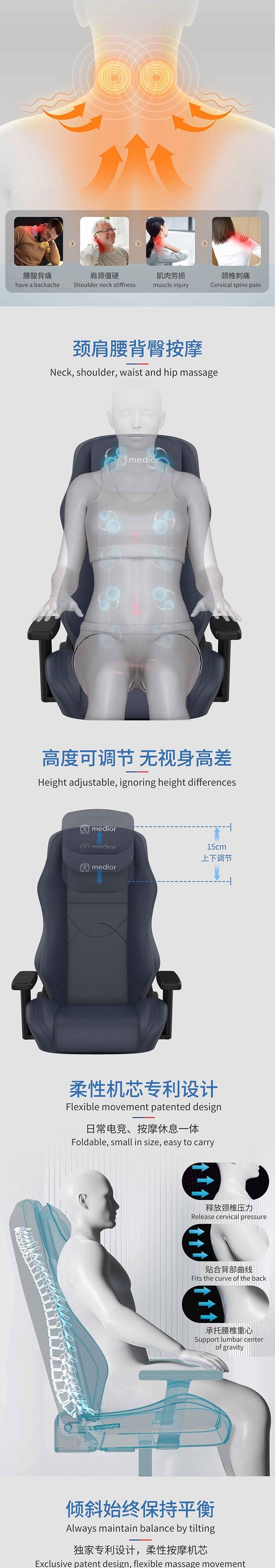 1) 頸部揉捏按摩,上下移動(dòng)調(diào)節(jié)